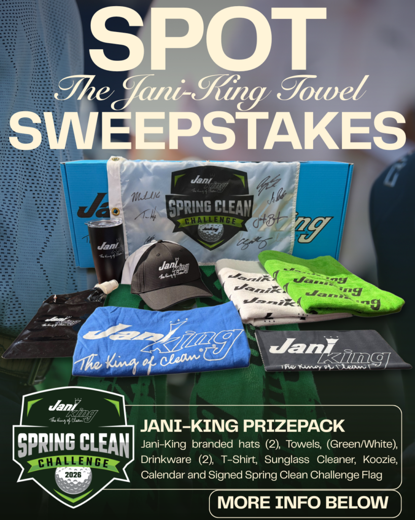 iconic Jani-King towel on the links, and tag @janikingclean in the post.